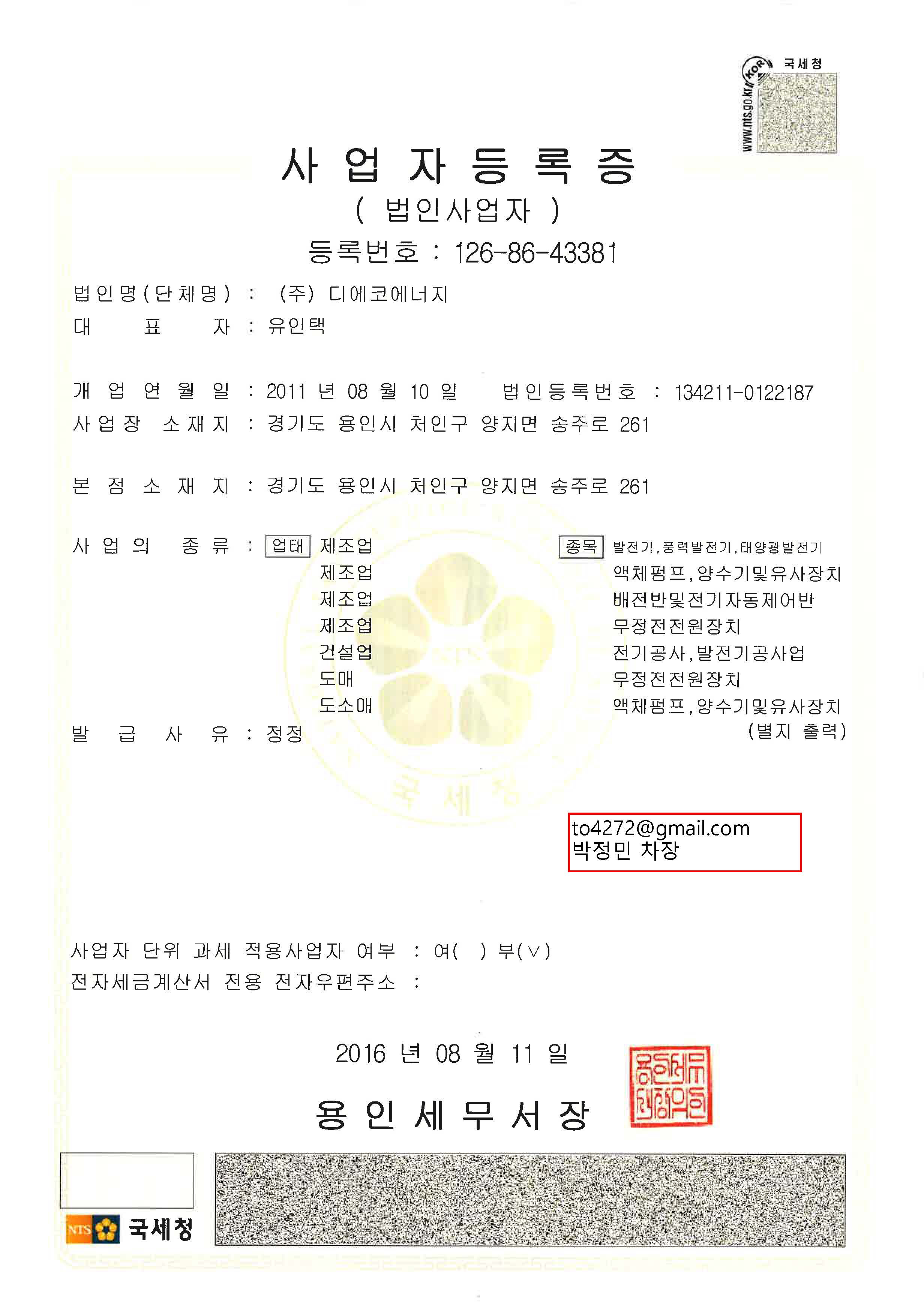 (ÁÖ)µð¿¡ÄÚ¿¡³ÊÁö °øÀåµî·Ï..