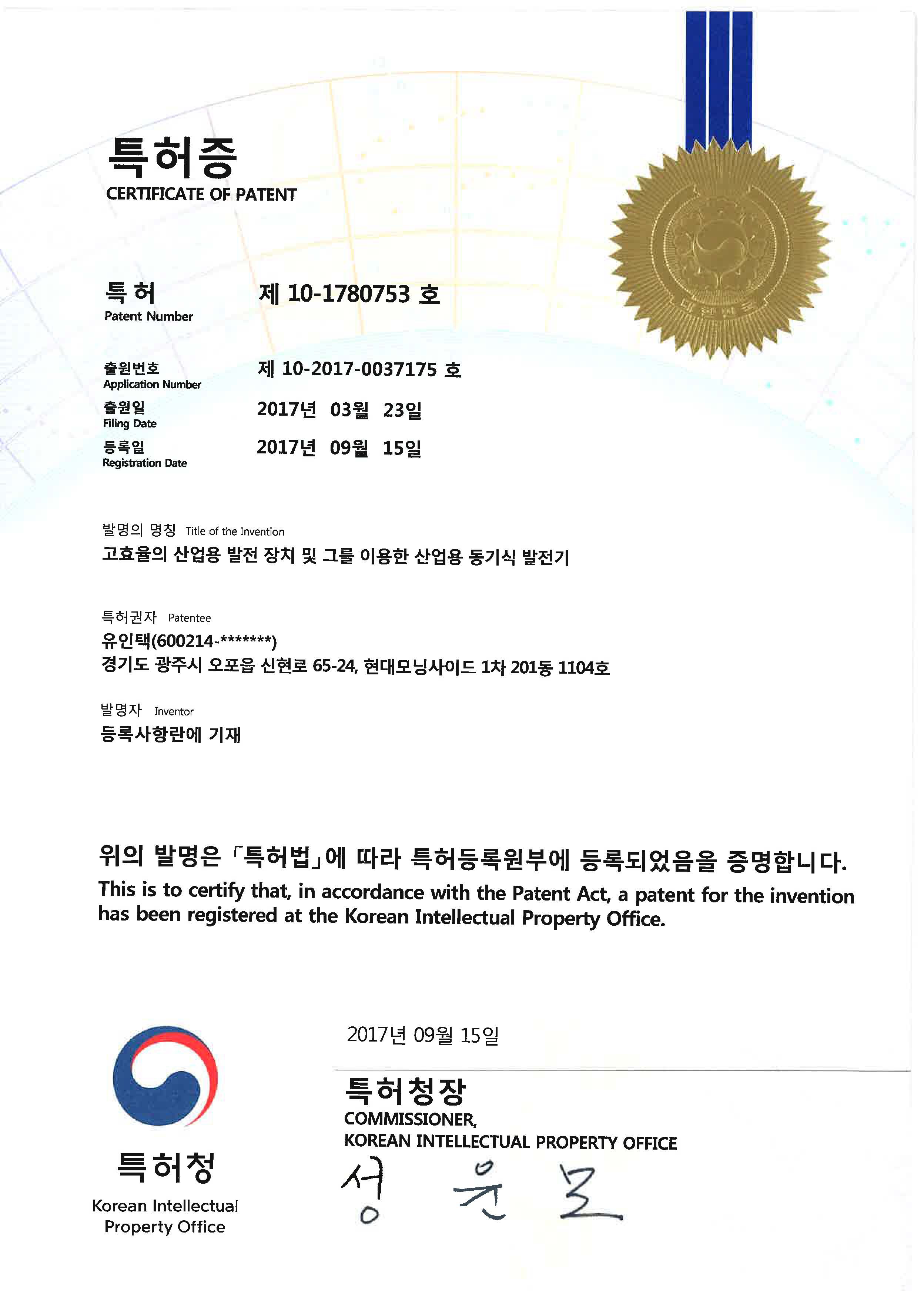 ƯÇãÁõ Á¦ 10-1780753È£-°í..