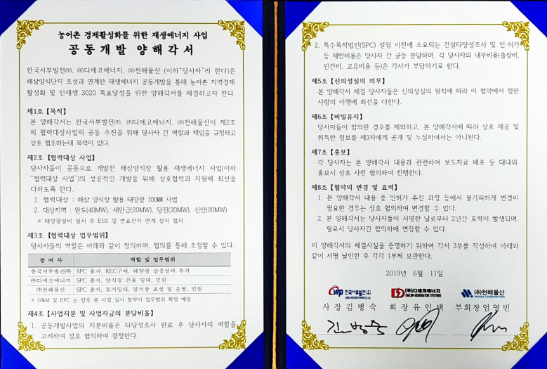³ó¾îÃÌ °æÁ¦È°¼ºÈ¸¦ À§ÇÑ Àç»ý¿¡³ÊÁö »ç¾÷ °è¾àü°á